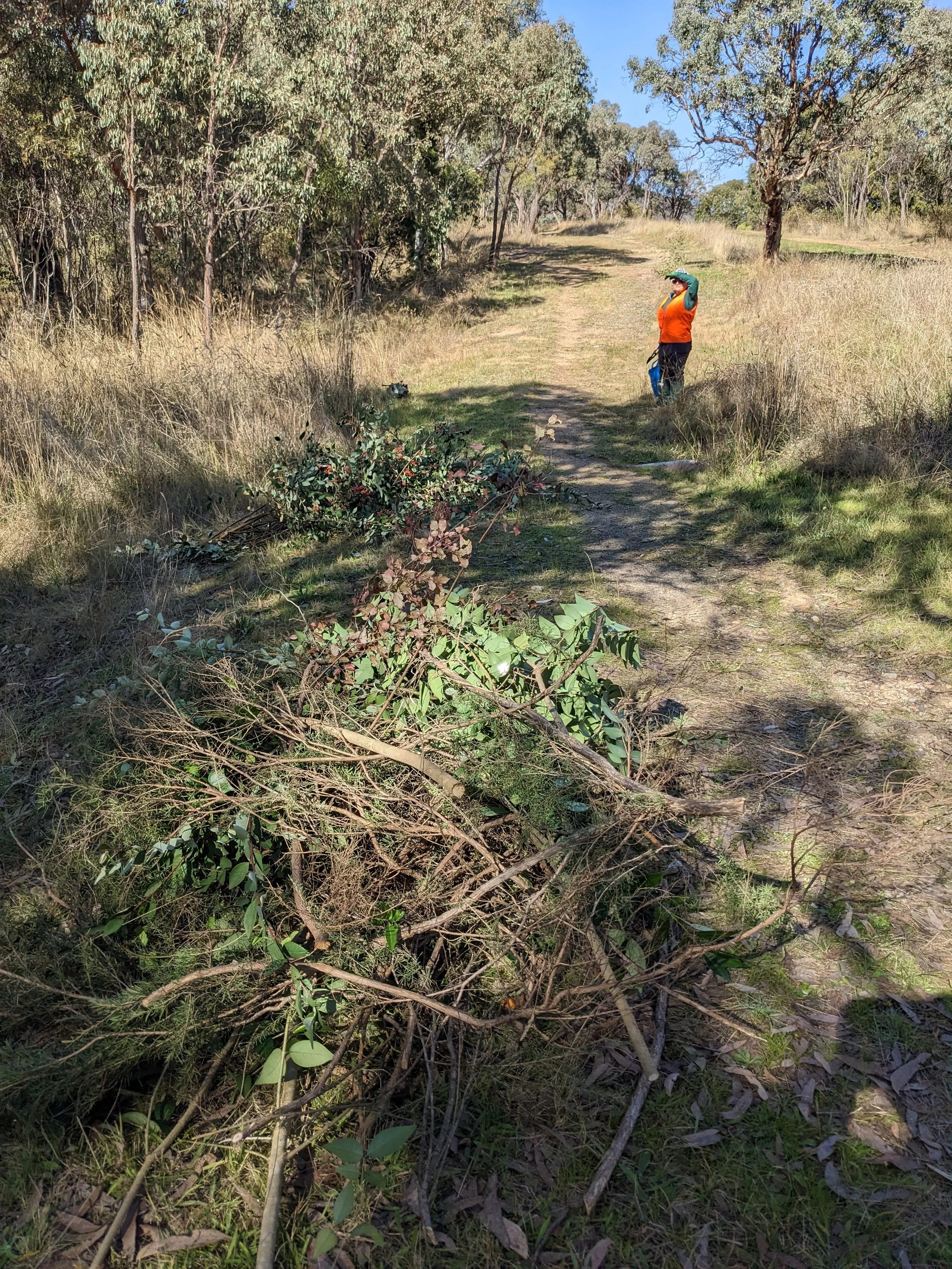 Members continued to hand weed, remove dead wood from shrubs on the hill, clip seedheads and sprayed weeds especially African Love Grass.