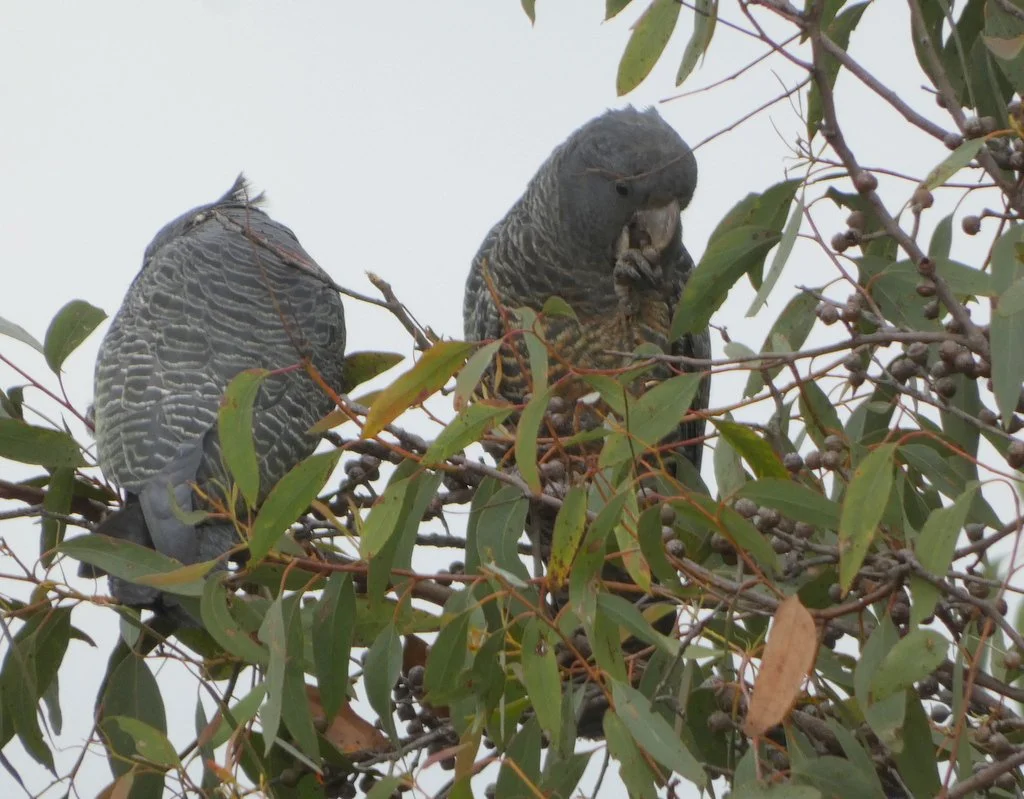 The Park features local native tree species, mainly Eucalyptus macrorhyncha, E. polyanthemos, E. mannifera and Acacia pycnantha (its green seed pods pictured right), shrubs including Bursaria spinosa, Acacia genistifolia, Kunzea ericoides and various peas, and ground layer plants including Rytidosperma pallidum (Red-anther Wallaby grass) in the woodland areas and Themeda triandra (Kangaroo Grass), Austrostipa (Spear Grasses) and Bothriochloa (Redleg Grass) in the grassland areas, as well as swathes of Leucochrysum albicans subsp. tricolor (Hoary Sunray) and other wildflowers including orchids throughout. Wildlife observed includes Grey Kangaroos, Bearded Dragons, Eastern Bluetongues, Copper Skinks and birds including Magpies, Kookaburras, Tawny Frogmouths, Wattle Birds, Friar Birds, Noisy Miners, Rosellas, King Parrots, Galahs, Koels, Fairy Wrens, Scarlet Robins, Pardalotes and Thornbills.