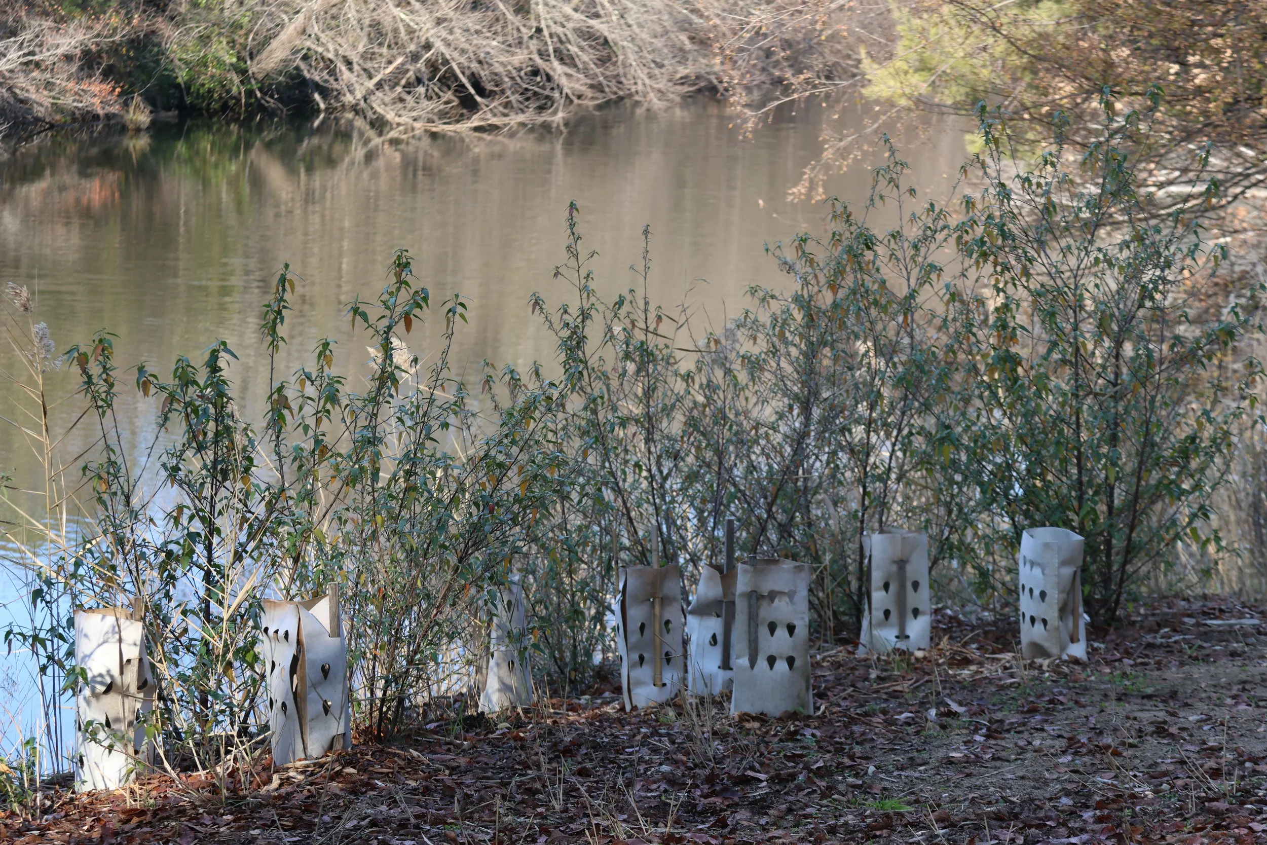 Queanbeyan Landcare hopes to address emerging riverbank instability with dense plantings of Carex, Lomandra, Poa and River Hemp.