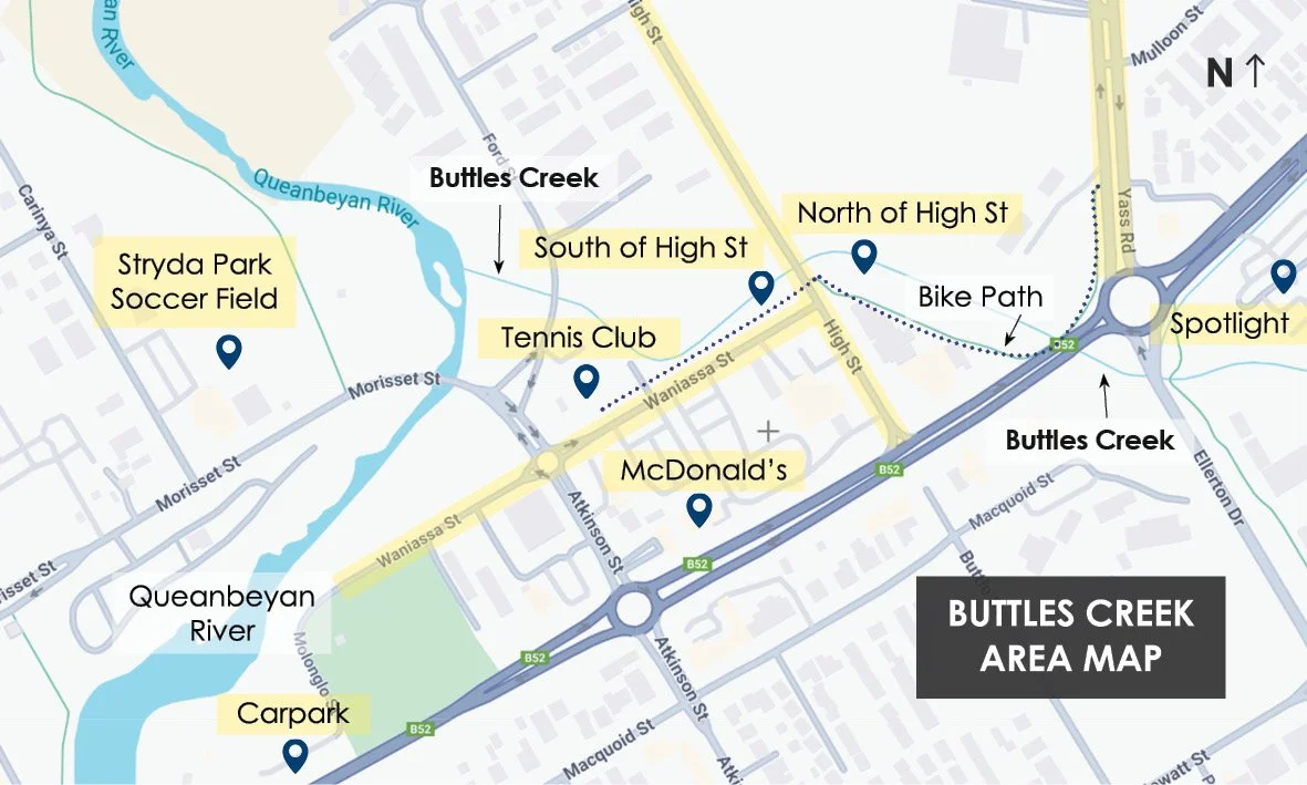 Queanbeyan Landcare has been working at various sites along the Queanbeyan River since the 1990’s, in partnership with other organisations. In 2025 work is happening at six sites, the Riverside Cemetery site (off Erin Street), the Outdoor Classroom (off Thorpe Avenue), Buttles Creek, Fairlane Fauna and Flora Reserve, Eastbank and Upstream of Dane Street. Read their stories below.